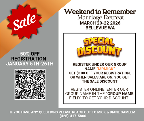 Yes, apply at the Family Life / Weekend to Remember within two weeks, and if you don't like the weekend you can also get a refund!